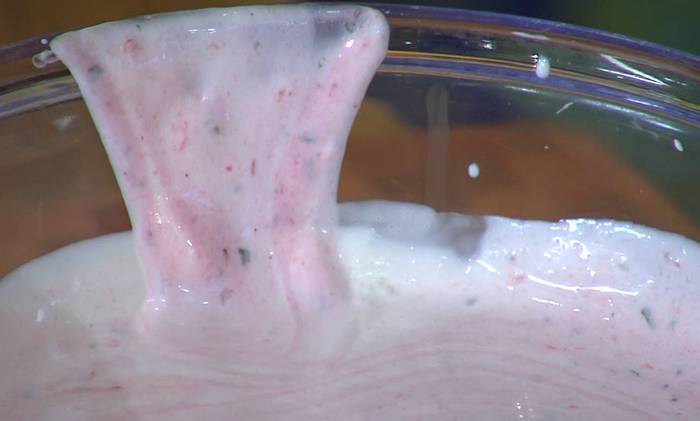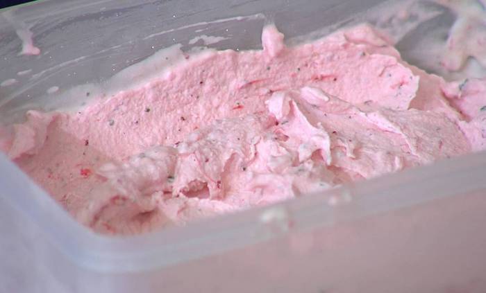 Перелить сливочно-клубничную смесь в контейнер с крышкой и охлаждать в морозилке, периодически перемешивая массу.