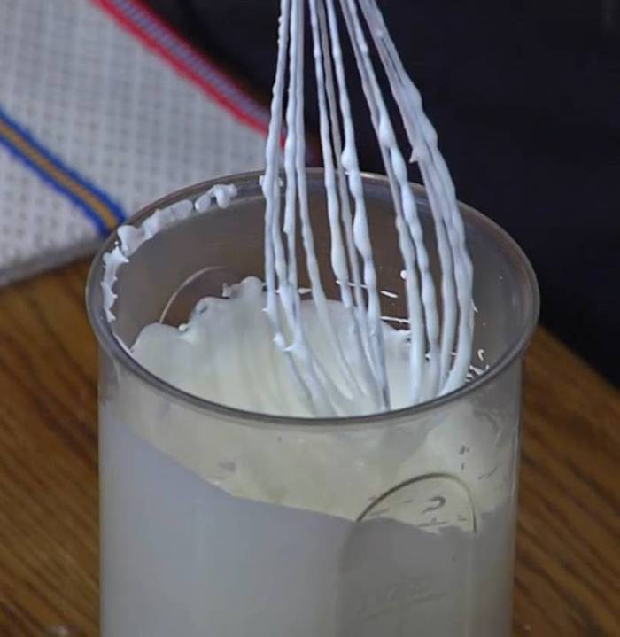 Соединить 250 мл сливок со 125 г сахарной пудры и взбивать блендером с насадкой-венчиком, пока масса не загустеет.