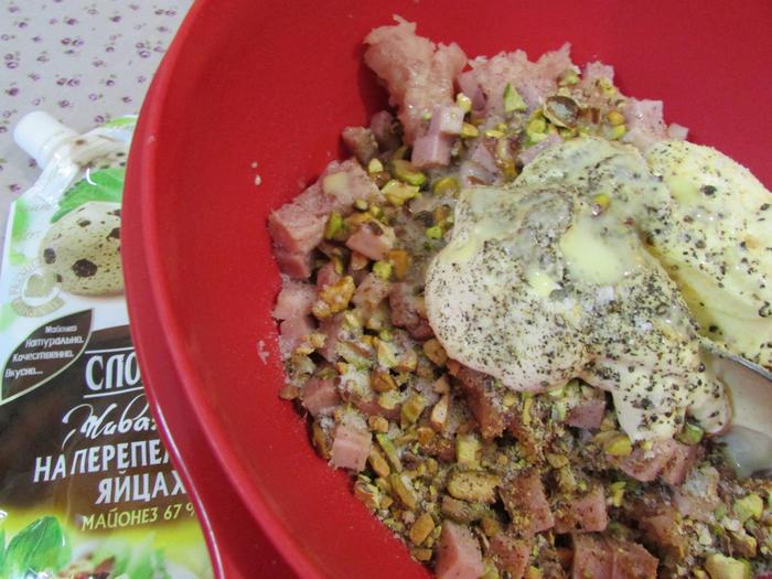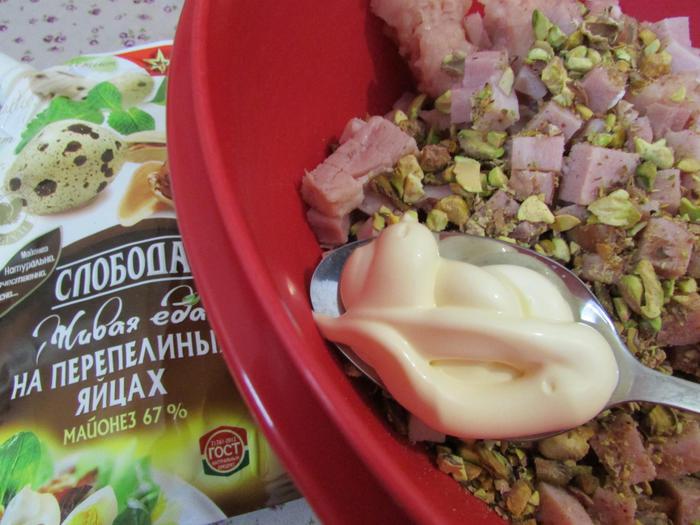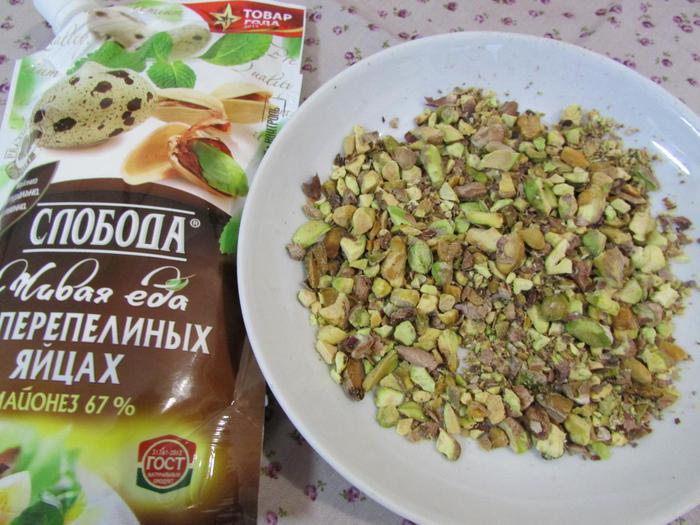 Добавить майонез ТМ «Слобода» На перепелиных яйцах и фисташки.