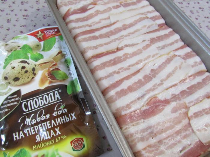 Закрыть свисающими краями бекона.