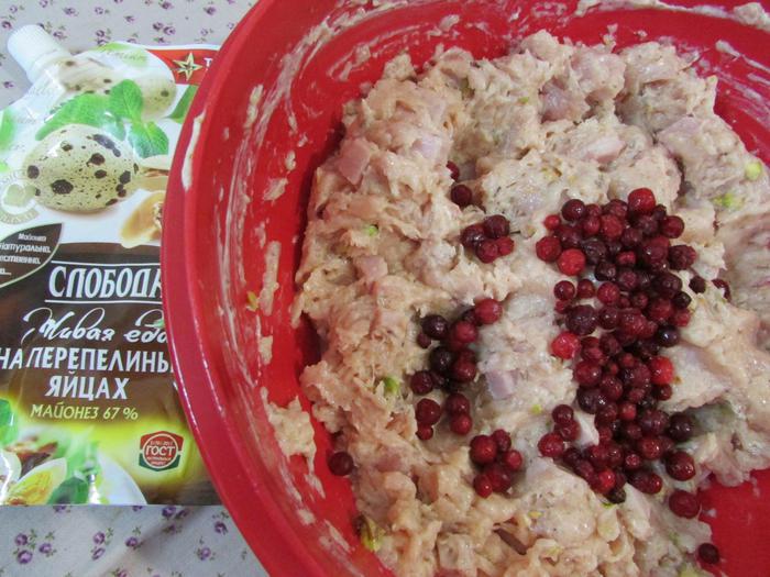 В последнюю очередь добавить бруснику и аккуратно перемешать.