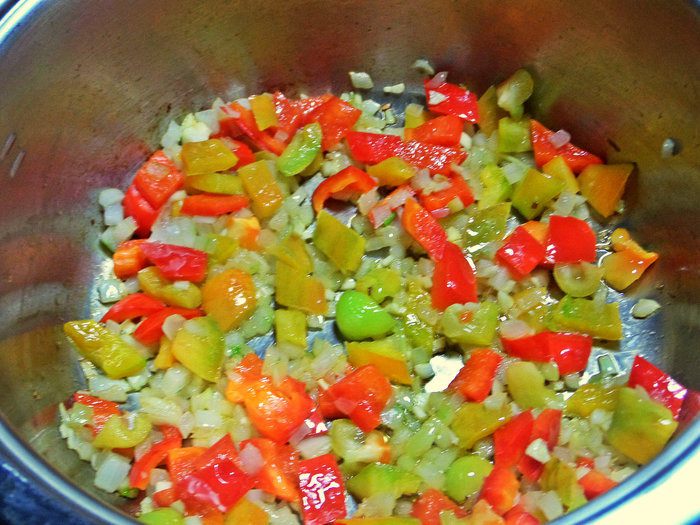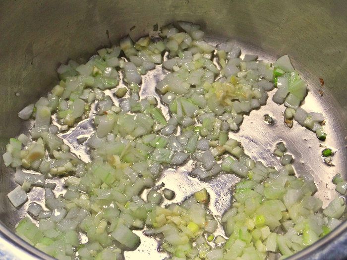 Обжарить в кастрюле с толстым дном на оливковом масле.