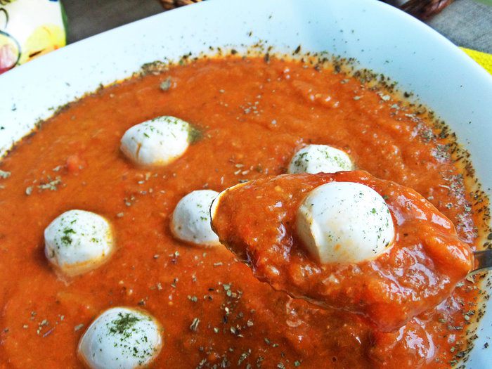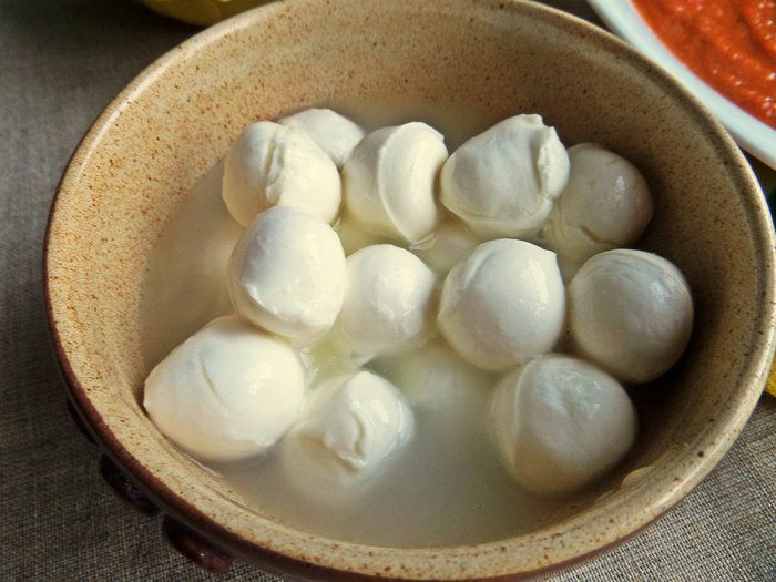 С моцареллы слить рассол.