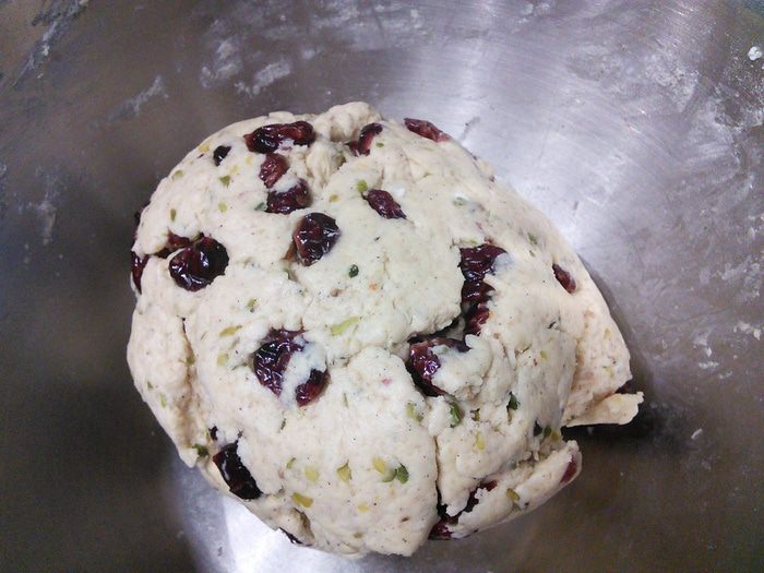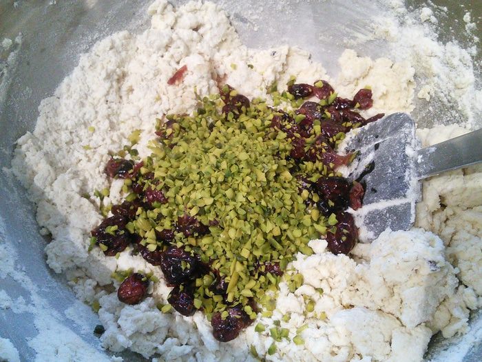 Добавить клюкву вместе с жидкостью, в которой она замачивалась, фисташки.