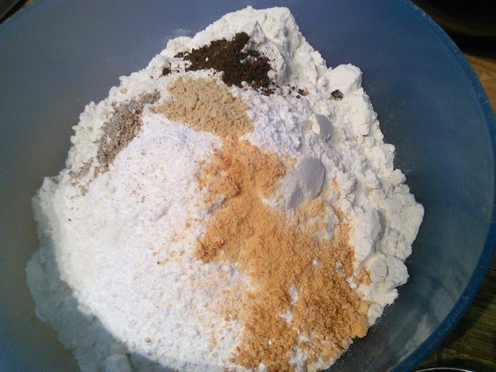 Смешать сухие ингредиенты (у меня молотая ваниль и порошок апельсиновой цедры, поэтому отнесла их к сухим ингредиентам. Если у вас палочка ванили и апельсин, то из нее нужно достать зернышки и, соответственно, снять с апельсина цедру).