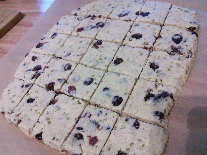 Тесто раскатать прямо на пергаменте и разрезать на квадраты.