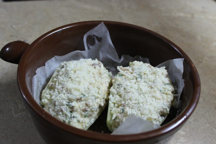 Предлагаю приготовить замечательное овощное блюдо из ароматного фенхеля. Фенхель обмойте, разрежьте пополам и отварите в течение 8 — 10 минут. Потом охладите, удалите немного сердцевину, мягкую ее часть мы добавим в начинку.