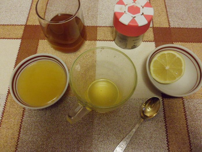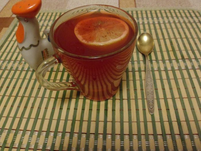 Воду вскипятить и заварить чай из расчета 1 ч. л. на персону, процедить. Прозрачную стеклянную чашку обдать горячей водой, положить мед, выжать лимонный сок, влить виски и горячий чай. Перемешать. С нетерпением ждем 3 минуты!