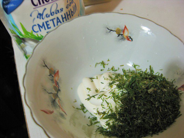 Для соуса смешать 3 ст. л. майонеза с укропом.