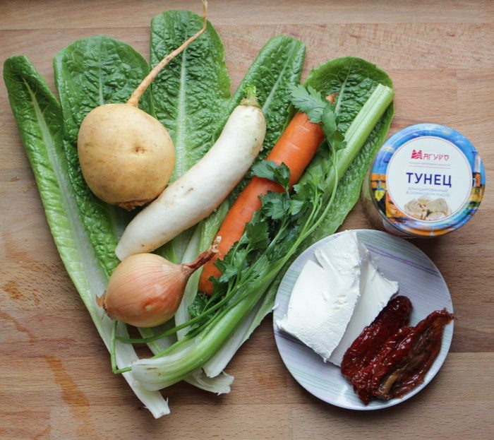 Я называю этот салат зимним, т. к. в нем все овощи и коренья возможно заменять исходя из наличия их в холодильнике.