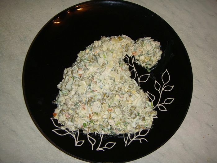 Выложить салат на блюдо в форме колпака.