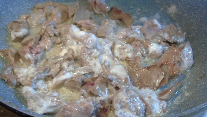 В оригинальном рецепте печень свиная, я ее и указываю в ингредиентах, но готовила с куриной и половину порции, хотя в следующий раз обязательно приготовлю со свиной и полную. Уж очень вкусно.