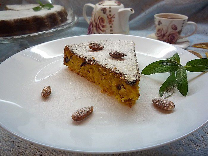 Torta di Zucca, итальянский тыквенный пирог, воздушный, ароматный!!! Дополненный изюмом, лимонными цукатами и миндалем.