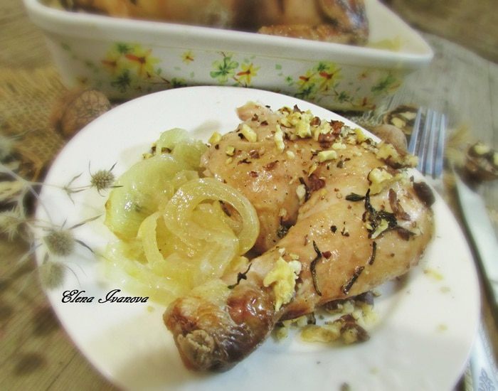 При подаче цыпленка посыпать дробленым грецким орехом.