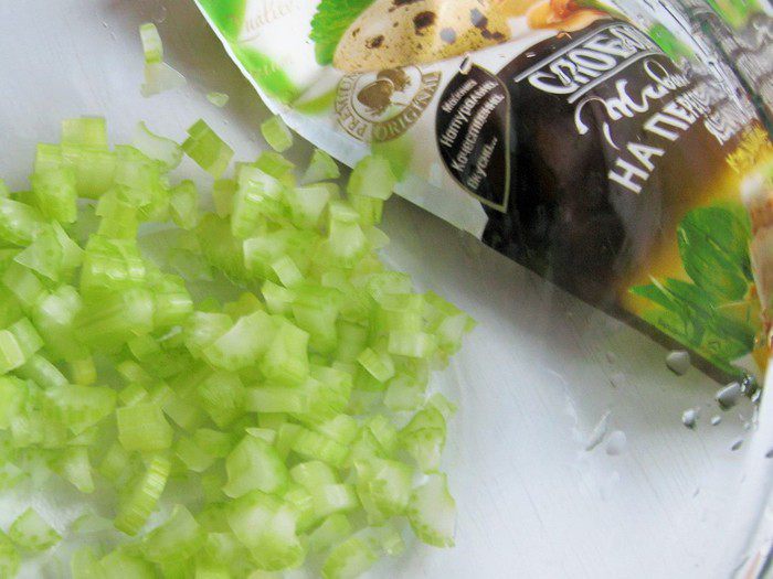 Мелко нарезать стебли сельдерея.