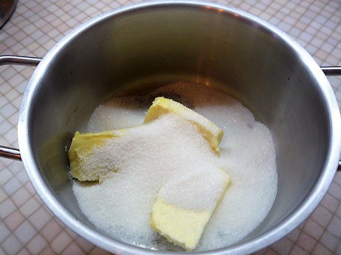 Готовим основу- корж. Размягченное масло взбиваем с сахаром до пышной белой массы.