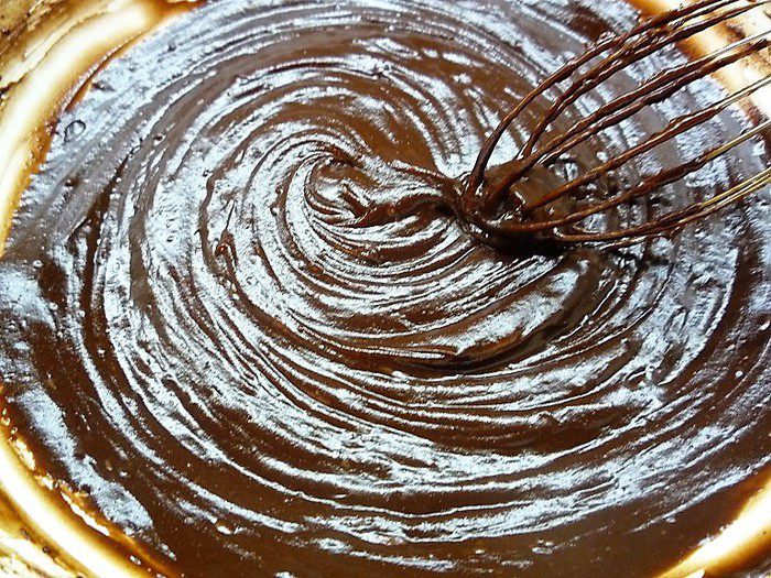 Ставим шоколадную смесь на медленный огонь и доводим до кипения постоянно помешивая в течении 5 минут до загустения. Добавляем сливочное масло и ваниль, еще раз хорошо перемешиваем. Снимаем крем с огня и даем остыть.