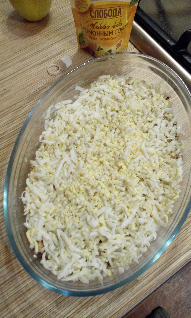 Покрываем все майонезом.