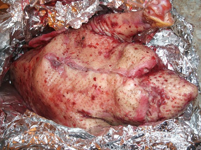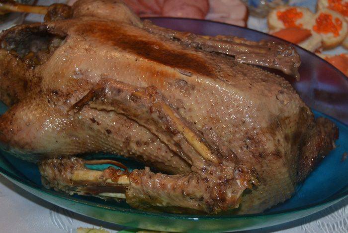 В фильме-сказке «Огниво» пришедший в трактир солдат просит принести ему в числе прочих блюд гуся «зажаристого, хрустящего». Возможно, такого, как наш. Мы приготовили его с клюквой и яблоками.