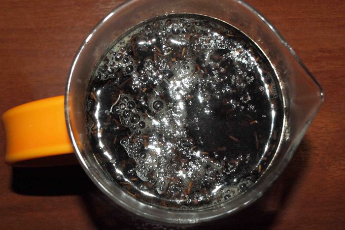 Сухую заварку залить кипятком и дать настояться 5 — 6 минут.