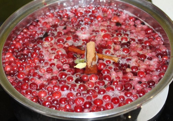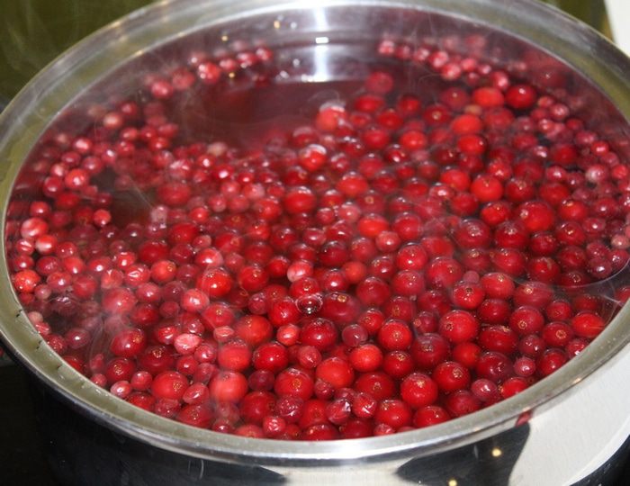 Вскипятить воду, опустить ягоды в воду, варить на небольшом огне 5 минут.
