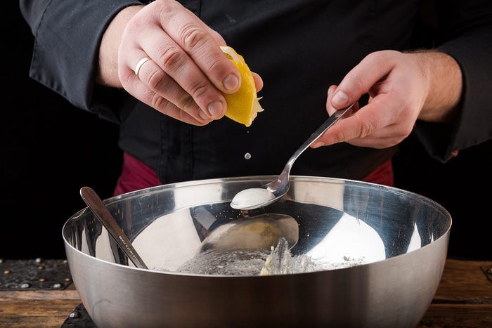 Добавить также соду (погасить в лимонном соке).