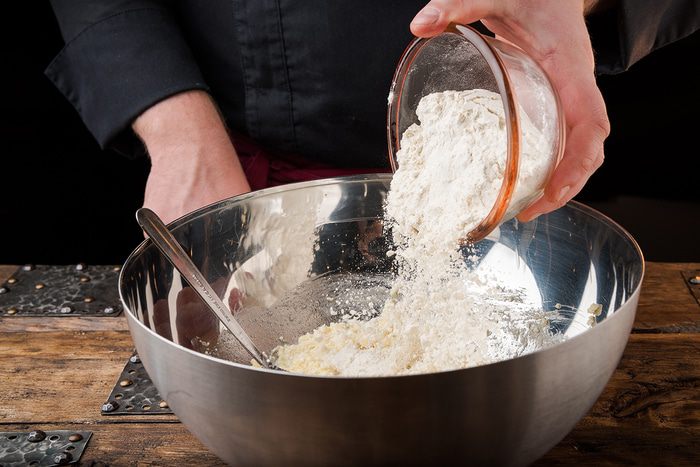 Добавить муку и ванилин.