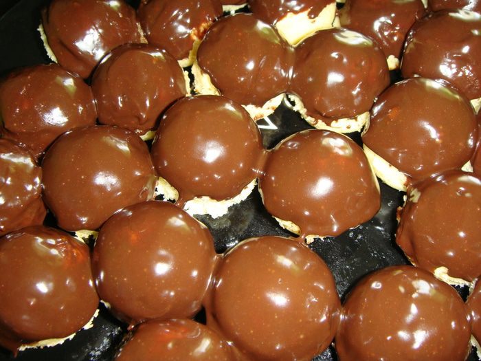 Шарики выложить на решетку и полить растопленным шоколадом.