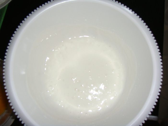 Яйца разделить на белки и желтки. В белки добавить 1/3 сахара и взбить в крутую пену.