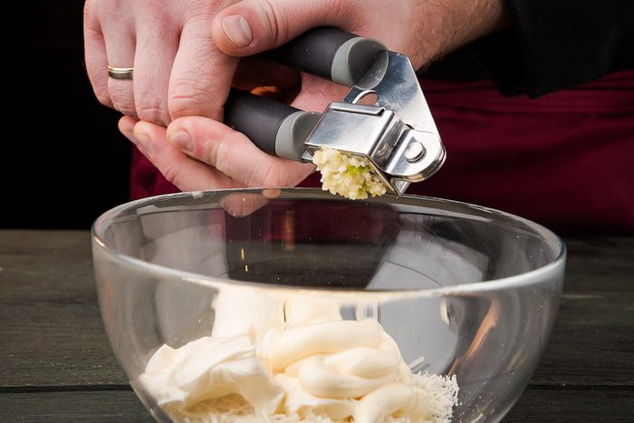 Чеснок измельчить через пресс.