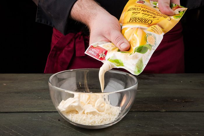 Твердый сыр натереть на терке, добавить майонез С лимонным соком ТМ «Слобода», плавленый сыр.