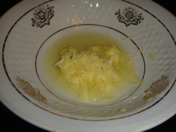 Корень имбиря почистить и натереть на средней терке. Из половины лимона выжать сок.