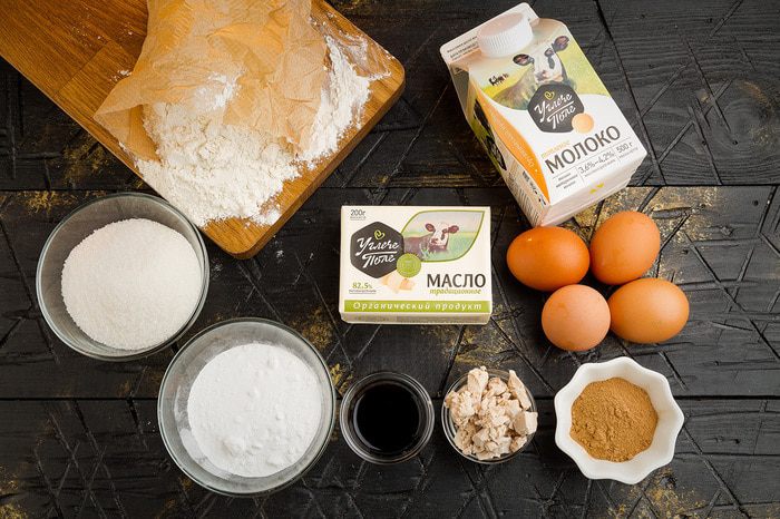 Для приготовления ароматных булочек нам понадобятся следующие ингредиенты.