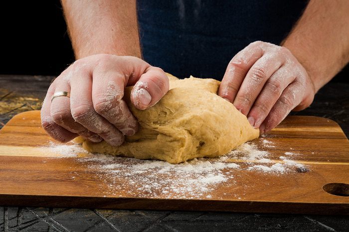 Замешиваем тесто. Чтобы оно поднялось, перекладываем его в чашу и накрываем пленкой, оставляем в теплом месте.
