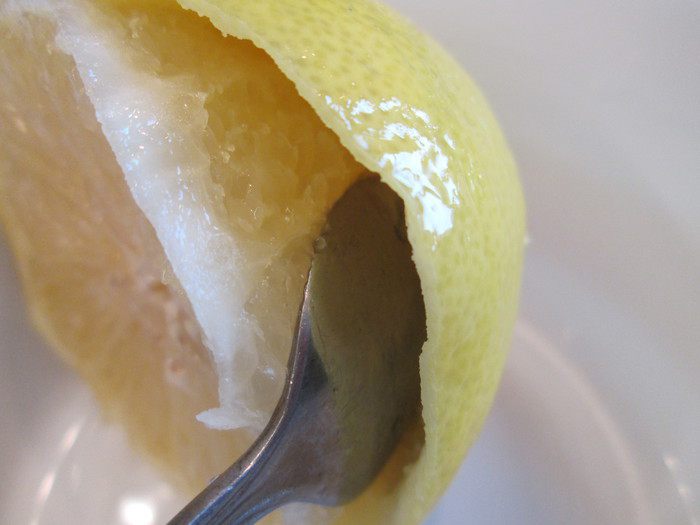 Вычищаем всю мякоть, помогаем ложечкой.