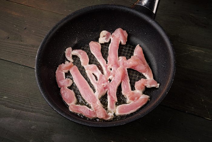 Филе индейки нарезать полосками и обжарить на оливковом масле.