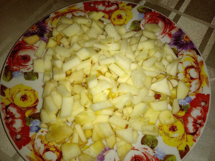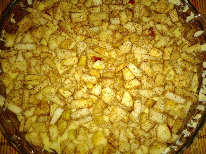 Сверху равномерно выложить яблоки.
