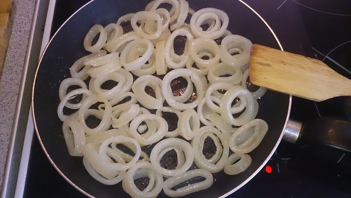Обжариваем на масле кальмары.