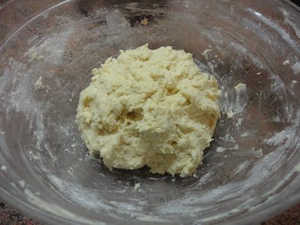Отдельно соединяем сухие ингредиенты: муку, соль и соду и добавляем к масляной смеси. Быстро замешиваем тесто.