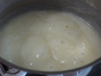 Смешиваем их вместе и в сотейнике с толстым дном доводим до кипения, снижаем температуру, варим, помешивая, 15 — 20 минут, до загустения. Действительно, сливочный аромат!