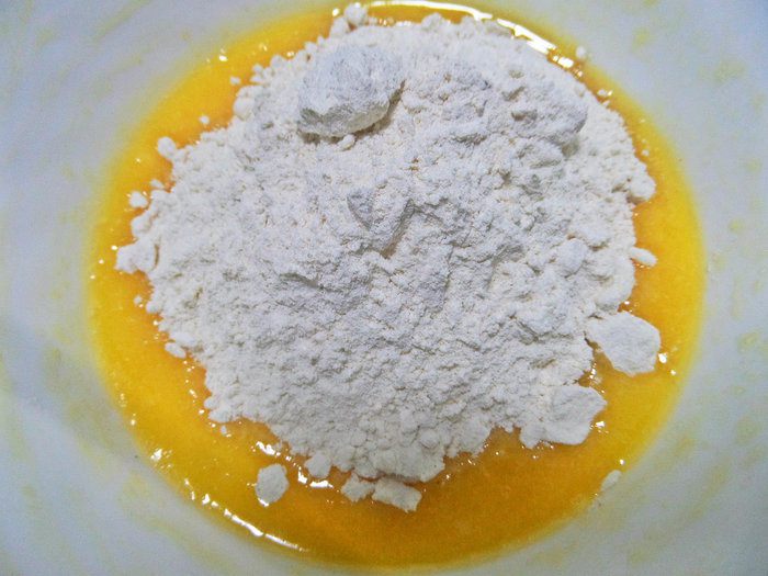 Я еще добавила сахар, но если брать сладкий апельсин, то сахар в тесто не нужно класть.
