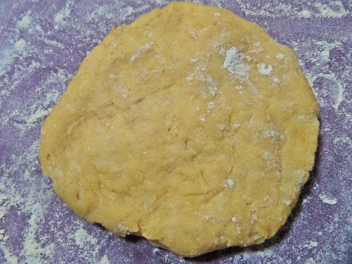 Перенести на доску или силиконовый коврик, присыпанный мукой.