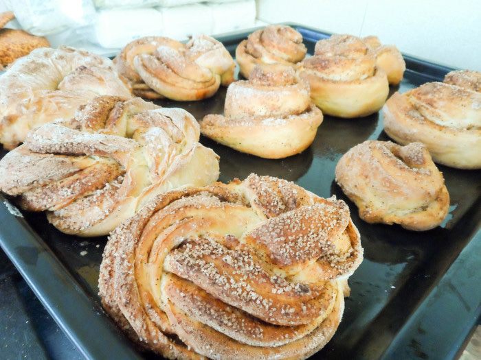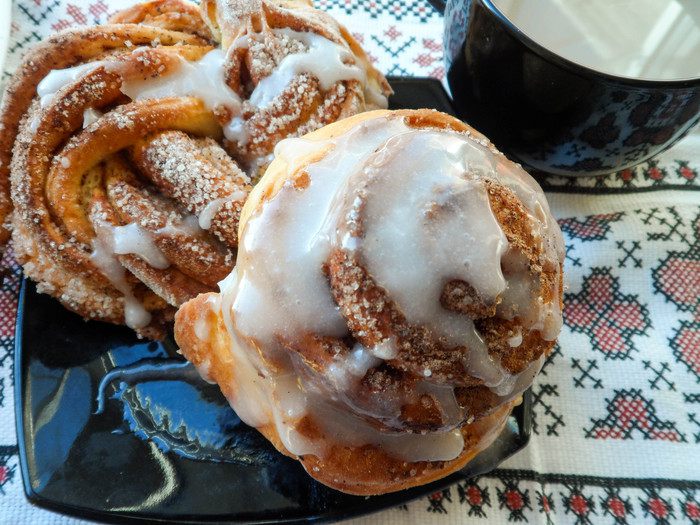 Вот и наши булочки! В принципе, их можно употреблять уже в таком виде, но сегодня мне захотелось полить их сахарной помадкой. Сахарную пудру заливаем теплой водой, перемешиваем. Варим на медленном огне. Когда сироп закипит, добавляем уксус, прикрываем кастрюльку крышкой и варим еще минут 10. Сироп должен стать достаточно густым (при необходимости количество воды и сахара можно скорректировать). Его готовность можно легко проверить: чайной ложкой зачерпнем будущую помадку и опустим в холодную воду. Если она не растворилась, а свернулась в шарик, значит, готова! Охлаждаем сироп, а затем взбиваем блендером на высокой мощности до тех пор, пока масса не станет белой.