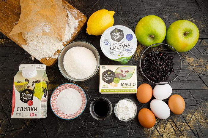Для приготовления фруктового пирога нам понадобятся следующие ингредиенты.
