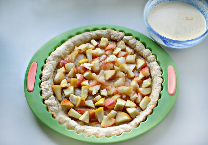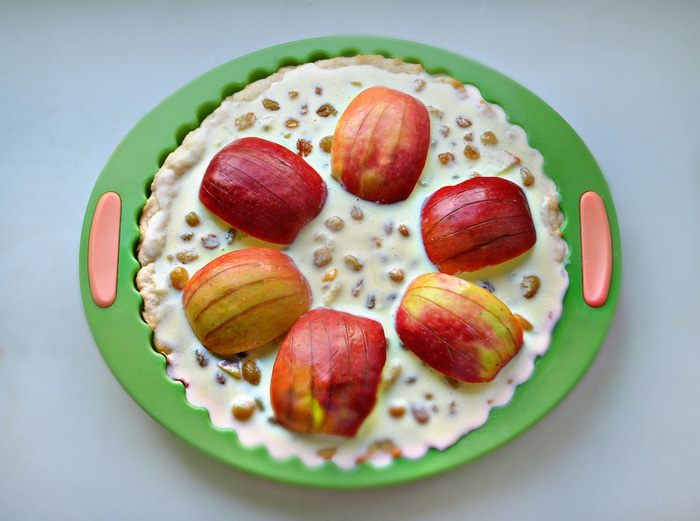 Поставьте форму с тестом в разогретую духовку до 180°С, на 10 — 13 минут.