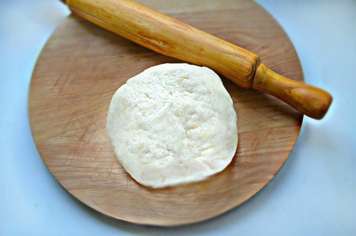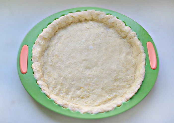 Охлажденное тесто достаньте из холодильника, выложите им дно и бока формы, предварительно смазав ее маслом (у меня силиконовая форма, поэтому смазывать маслом не понадобилось).