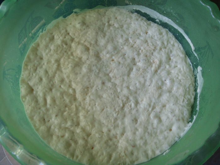 Чашку с тестом накрыть пленкой и оставить бродить при комнатной температуре на 12 часов.