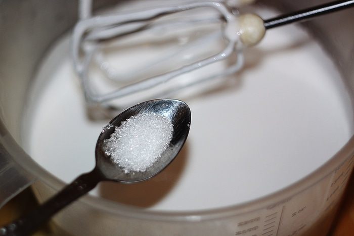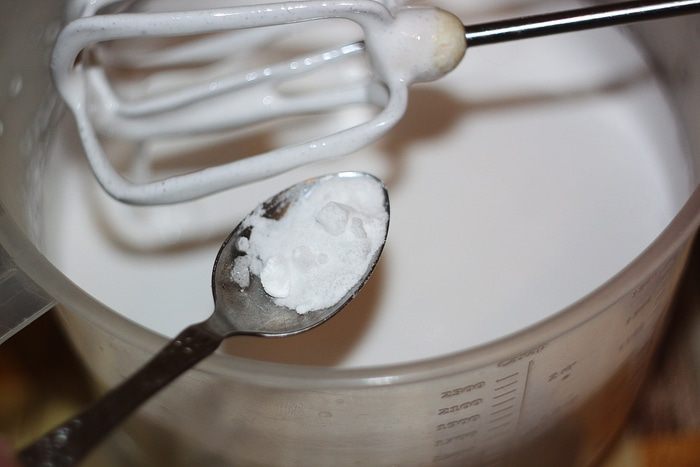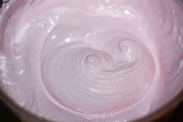 Добавить краситель (можно и без него, тогда зефир получится чисто белый) и снова взбивать 5 минут. Я брала краситель в порошке, но можно и жидкий, здесь непринципиально. И по количеству опирайтесь на то, насколько насыщенный цвет зефира вы хотите получить.