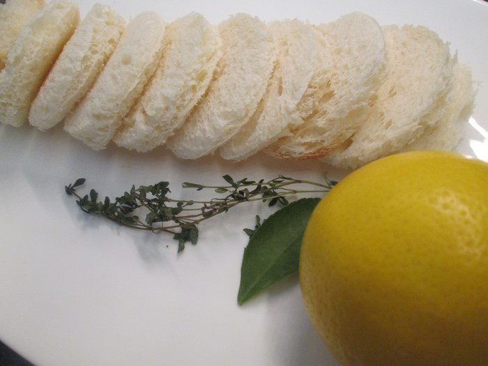 Растапливаем сливочное масло с небольшим количеством оливкового и веточкой тимьяна. Через минуту вынимаем тимьян, добавляем лук, еще через минуту — просеянную муку и снимаем с огня.