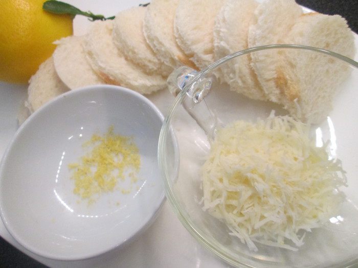 Натираем на мелкой терке пармезан и снимаем с лимона цедру.